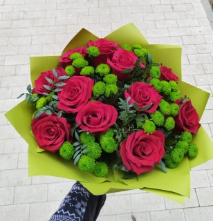 Зеленые хризантемы передают энергию природы, способствуют расслаблению и снятию стресса. Красные розы, символ страсти и любви, добавляют романтичности и роскоши. Вместе они создают удивительно гармоничное сочетание, привнося воздушность и свежесть в любое пространство. Этот букет наполнен чувственностью и изысканностью, способен вызвать восторг и улыбку, а также станет идеальным подарком для особого человека или украшением любого мероприятия.
